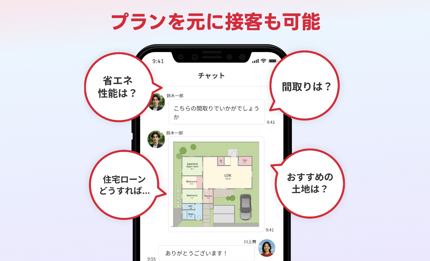 お施主様との情報共有や、やり取りを円滑にし、優れた顧客体験を提供することができます。