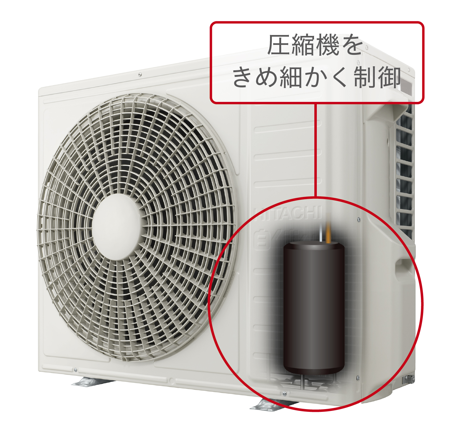 本製品では、室温が設定温度に達した後の室温安定時に節電効果が期待できる環境(住宅断熱性能、外気温度、お部屋の状況など)と判断したら、圧縮機を細かく制御することで、運転を低出力に自動で切り替え継続的に冷房・暖房運転を行います。エアコンの運転・停止の頻度を抑えることで、室温の上下変化も少なく室内温度と湿度を安定させ、節電と快適さを両立します。