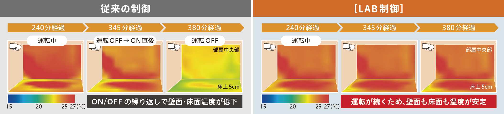 図5:従来制御と「LAB制御」の室内温度分布(*6)(イメージ図)