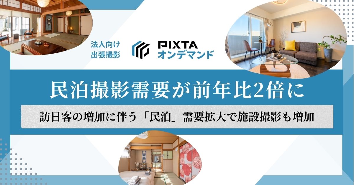 ピクスタ株式会社(東京都渋谷区 代表取締役社長:古俣大介、東証グロース:3416)が運営する法人向け出張撮影プラットフォーム「PIXTAオンデマンド」(https://od.pixta.jp/)は、2024年9月~2025年8月における民泊施設撮影依頼件数が前年比207%に達したことをお知らせいたします。