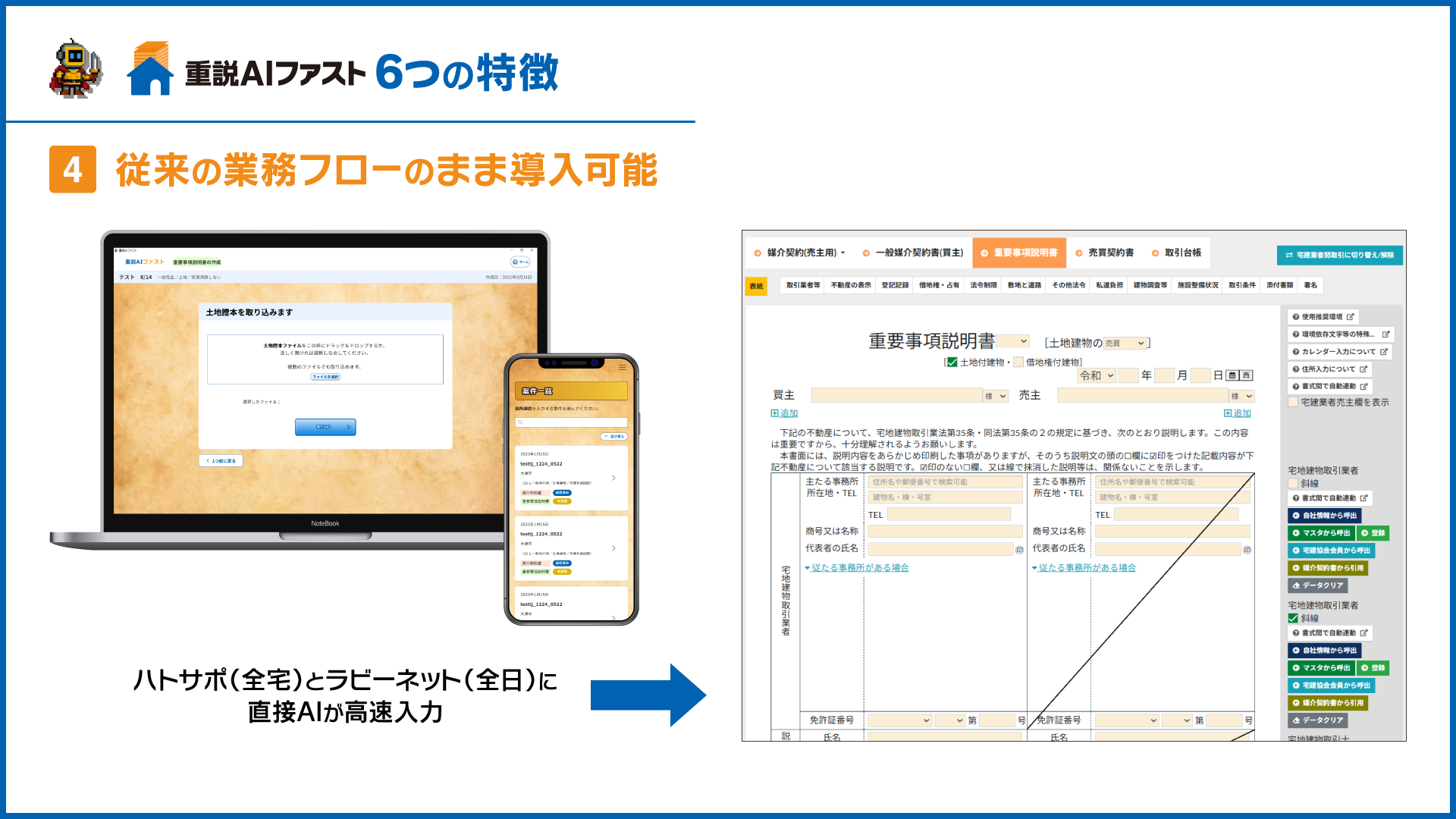 業界初の「ハトサポ(全宅)」「ラビーネット(全日)」への直接・高速AI入力に対応。