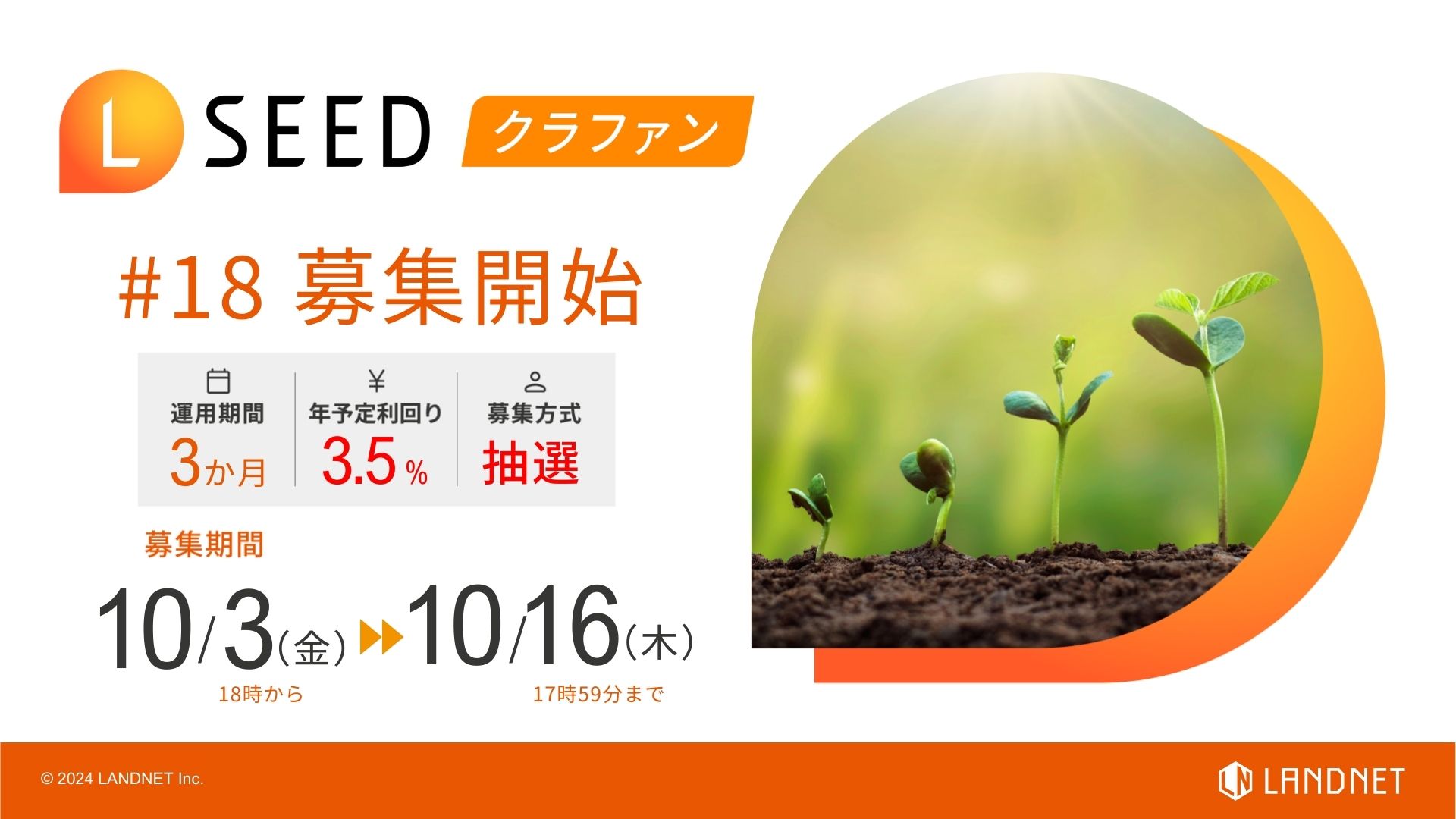 最新のテクノロジーと独自のデータベースを活用した「ダイレクト不動産」で、不動産の流通・再生・運用に新たな価値を創造する株式会社ランドネット(本社:東京都豊島区/代表取締役社長:榮 章博、証券コード:2991、以下ランドネット)は、不動産投資クラウドファンディング『LSEED(エルシード)#18』のファンド募集を、10月3日(金)より開始いたします。