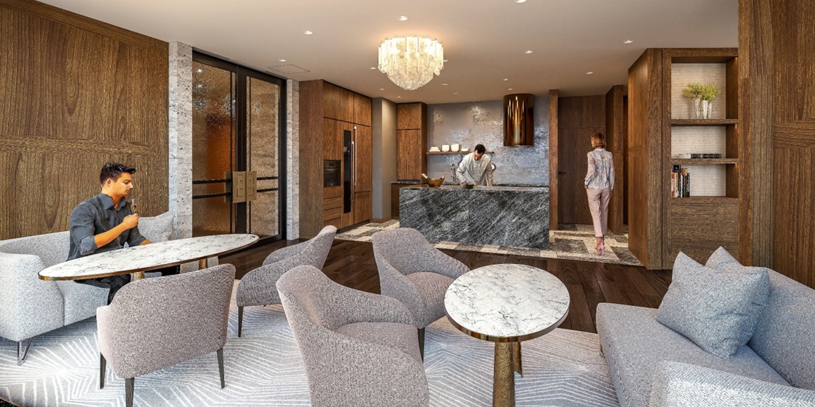 居住者専用の共用施設として、50階にキッチン付きパーティーラウンジ、マルチルームを備えたテラス付きロビーラウンジをご用意いたします。39階~47階に展開するホテル「ウォルドーフ・アストリア東京日本橋」とデザイン・世界観を統一し、上質で洗練された空間を演出します。