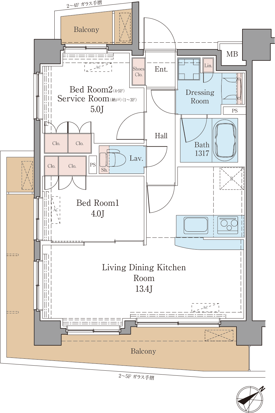 間取り : 1SR(3戸)、1LDK(2戸)、1SLDK(18戸)、2LDK(17戸)、2SLDK(4戸)、