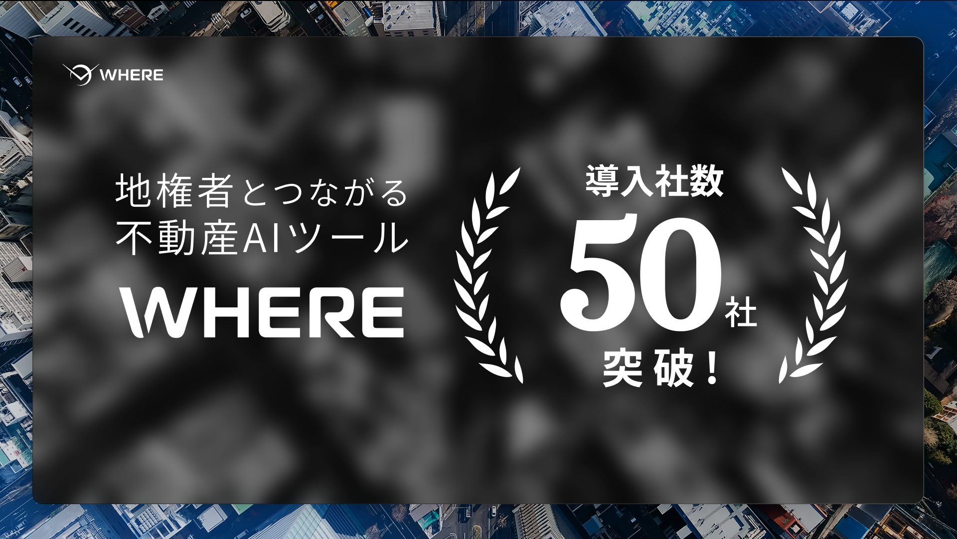 株式会社WHERE(本社:東京都文京区、代表取締役CEO:阿久津 岳生)は、地権者とつながる不動産AIツール『WHERE』の導入社数が50社を突破しましたことをお知らせいたします。