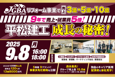 「リアル」にこだわった学びの機会を提供している一般社団法人日本優良ビルダー普及協会(事務局:東京都港区、代表理事:田島亮、以下「JGBA」)では、会員企業の更なる情報共有と交流機会創出のため、2021年から、リアルやオンライン、コラボなど様々な形での勉強会や現地視察会などを開催。2025年には「顧客心理をつかむ営業手法~住宅会社の「必ず売れる仕組み」作りと「売れる営業センスをスキル」に変える方法~」、「覚悟の持ち方~経営にも通じる覚悟の持ち方~」、「毎月1~2棟受注地域密着安定受注実践会」、「工務店WEB集客課題解決セミナー」、「二代目経営者塾」、「免震保証付き基礎工法セミナー」、「住宅ローン金利上昇対策セミナー」、「工務店AI活用基礎セミナー」と様々なテーマや切り口で知見やノウハウをアップデートする機会を提供してきました。