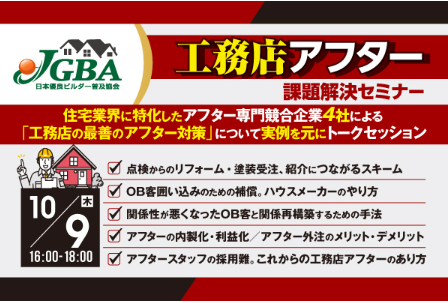 ■10月9 日(木)『工務店アフター課題解決セミナー』を開催!!
