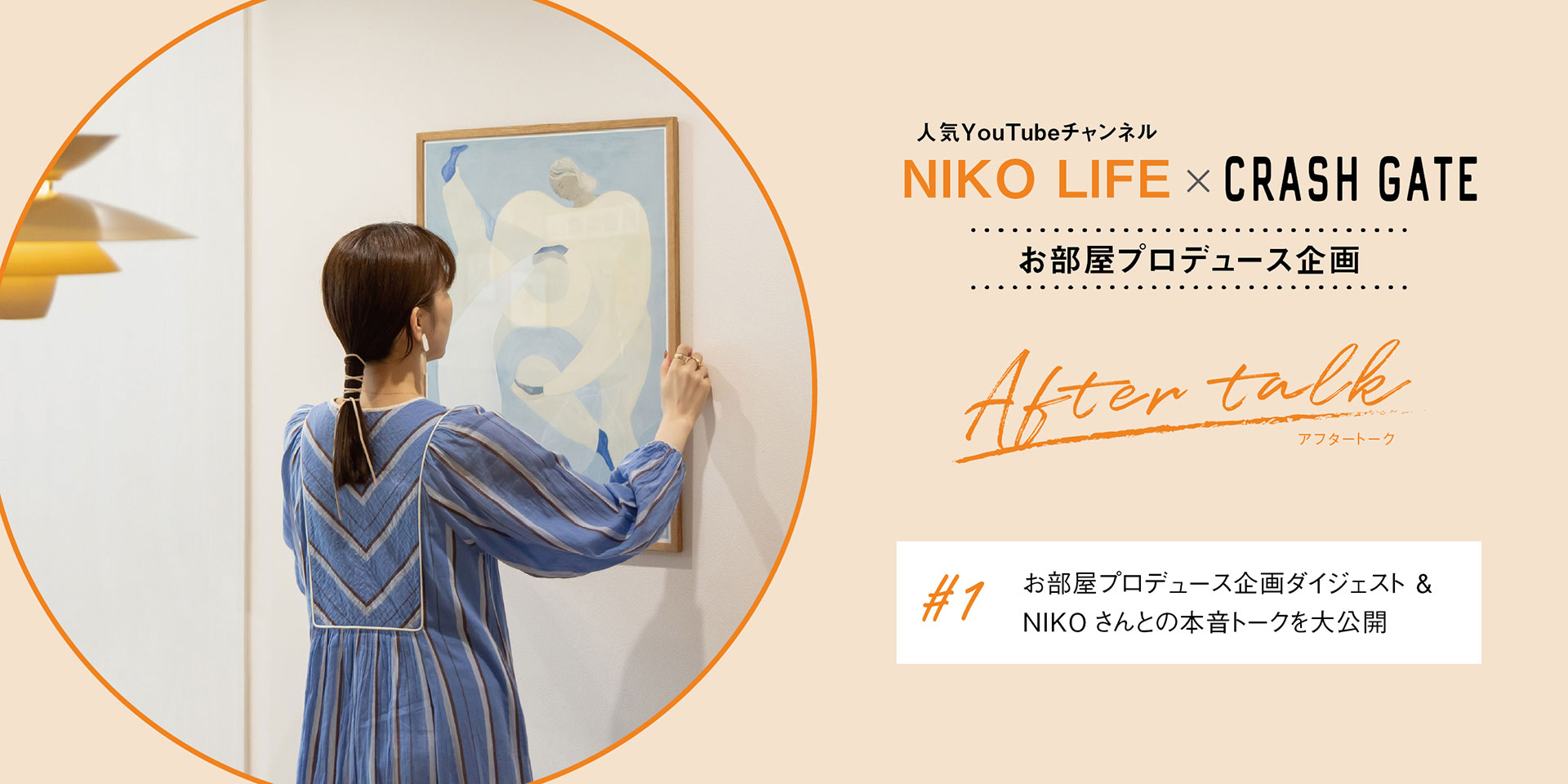 あわせて、CRASH GATE公式通販サイトの特設ページでは、本企画のダイジェストやアフタートークとしてNIKO LIFEの本音に迫るインタビューやおすすめの家具や雑貨の紹介を掲載しています。視聴者・読者の皆さまにも、インテリアの楽しみ方を身近に感じていただけるコンテンツをご用意しています。