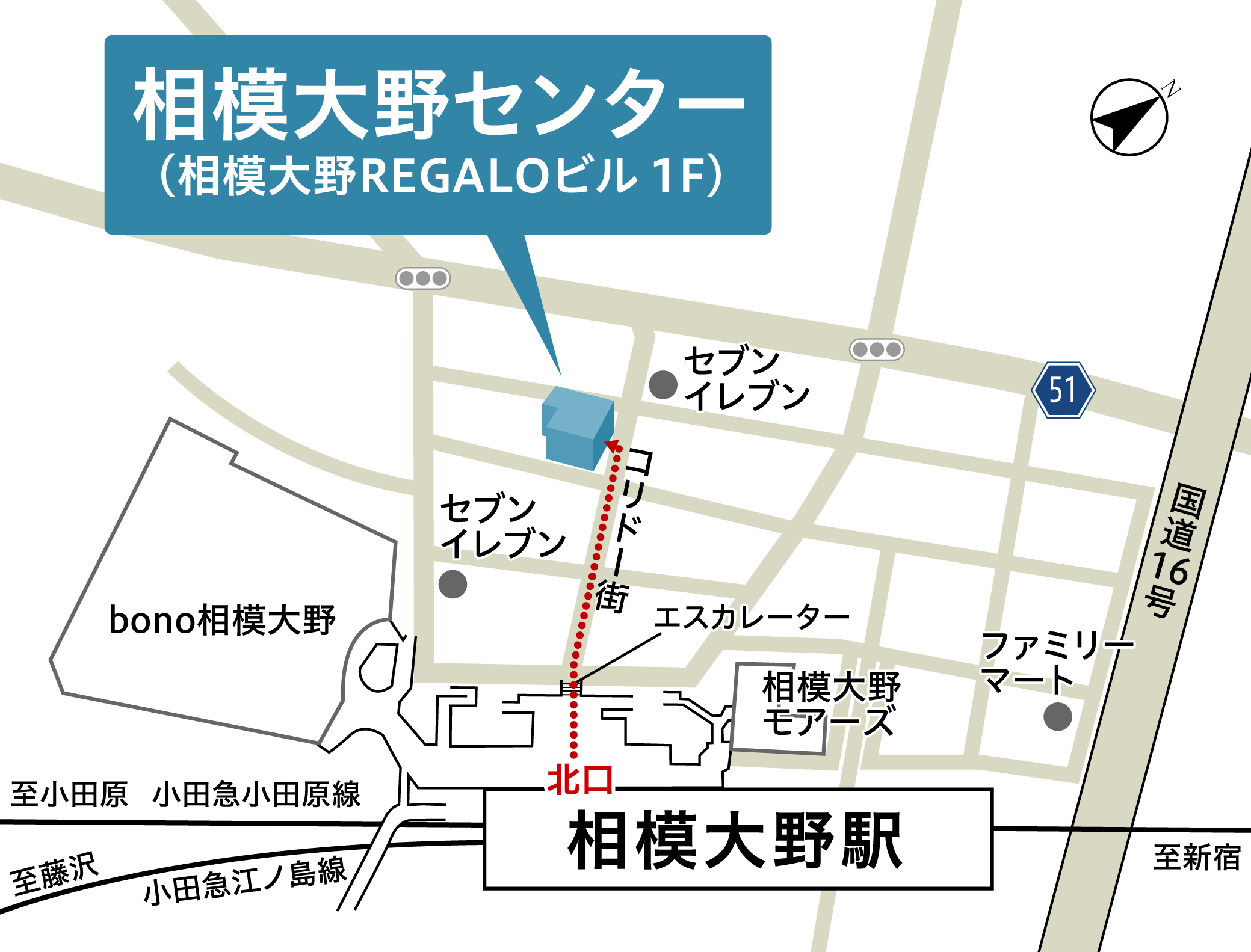 相模大野センターは、相模大野駅より徒歩3分、駅から続くコリドー街の中にある相模大野REGALOビルの1階路面店舗に出店します。