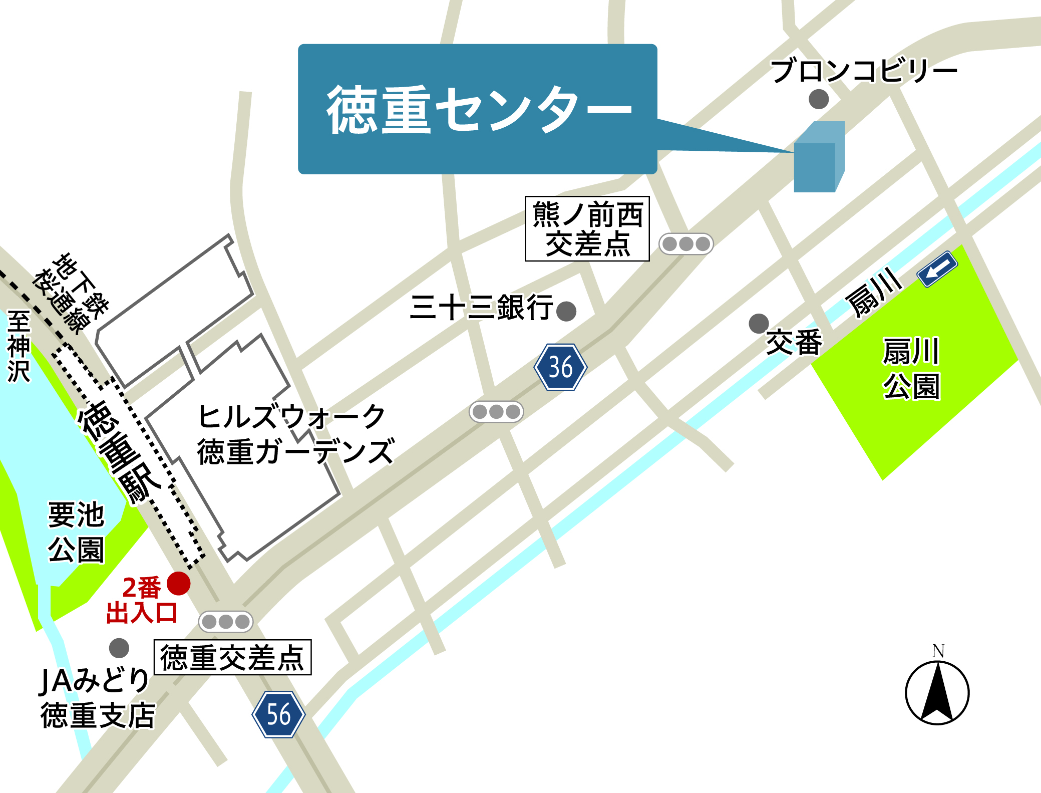 徳重センターは、地下鉄桜通線の終点「徳重」駅から徒歩8分の位置にある幹線道路(県道36号)に面した店舗です。