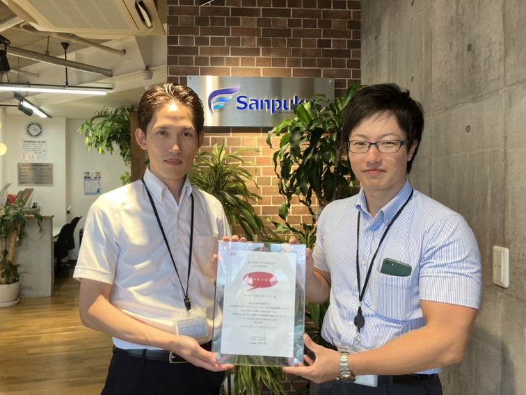 日本社宅サービス様の加盟店認定書と三福社宅サービススタッフ