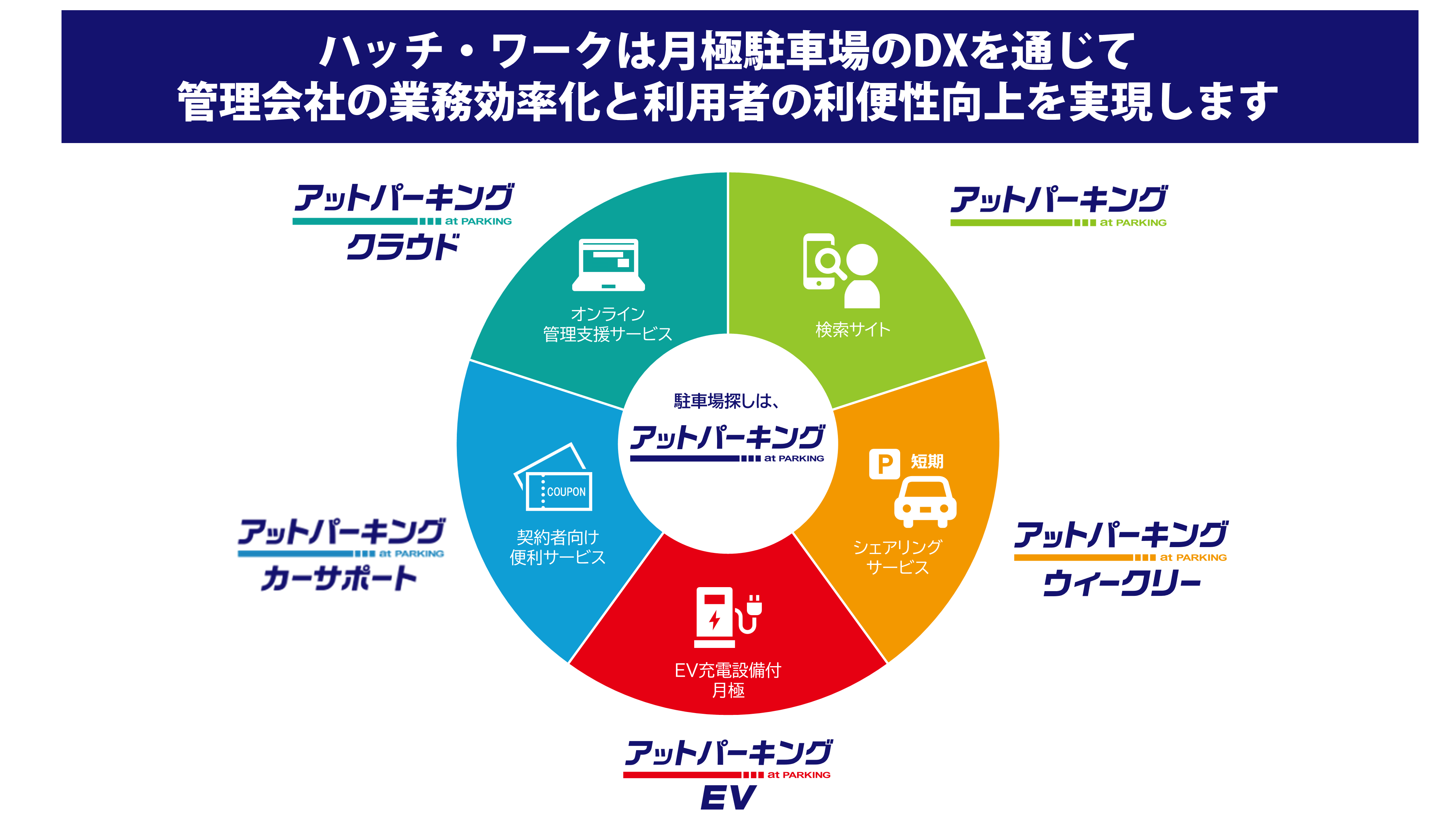 一方、ハッチ・ワークは月極駐車場オンライン管理支援サービス「アットパーキングクラウド」を通じて、不動産会社のDXを推進し、業務効率化と収益向上を支援してきました。この取り組みをさらに強化すべく、利用者に対して「特典付き月極駐車場」という新しい価値を提供することで、導入企業が管理する月極駐車場の稼働率向上に貢献することを目指しており、コンテンツの拡充を検討していました。