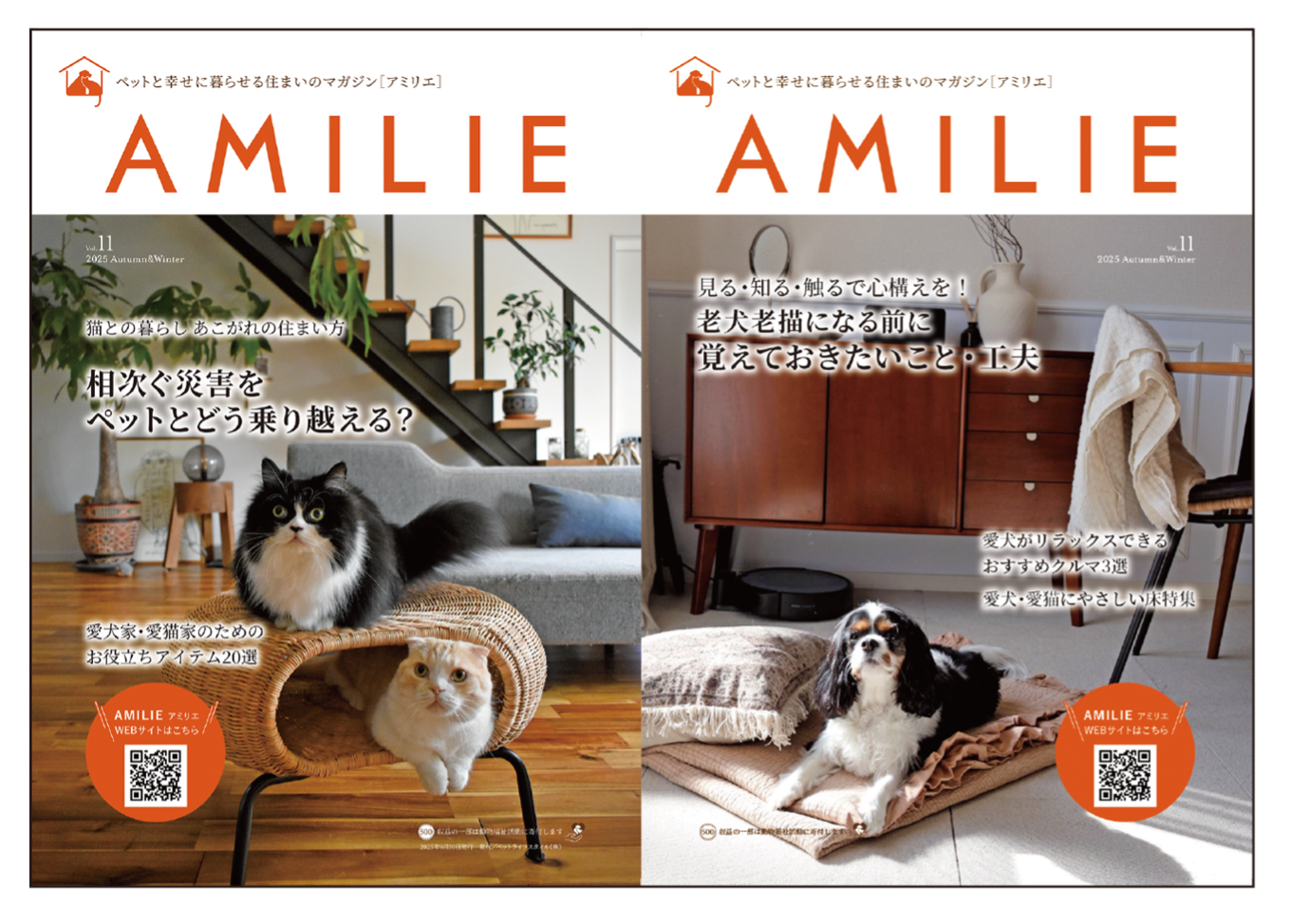 「愛犬家住宅&愛猫家住宅コーディネーター」の資格講座を運営するペットライフスタイル株式会社(本社:東京都港区、代表:中嶋宏一)は、ペットと幸せに暮らせる住まいのマガジン「AMILIE(アミリエ)」の最新号となるVol.11を2025年9月30日(火)に発刊しました。