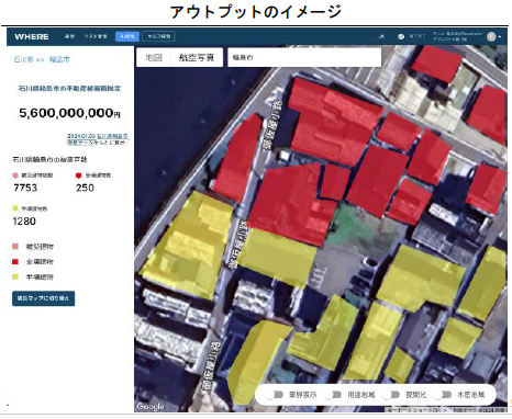 当社は『WHERE』の不動産関連情報基盤をもとに、震災直後の衛星データを活用した網羅的かつ一元的な被害状況把握システム構築を目指しており、その一環として開始されました。