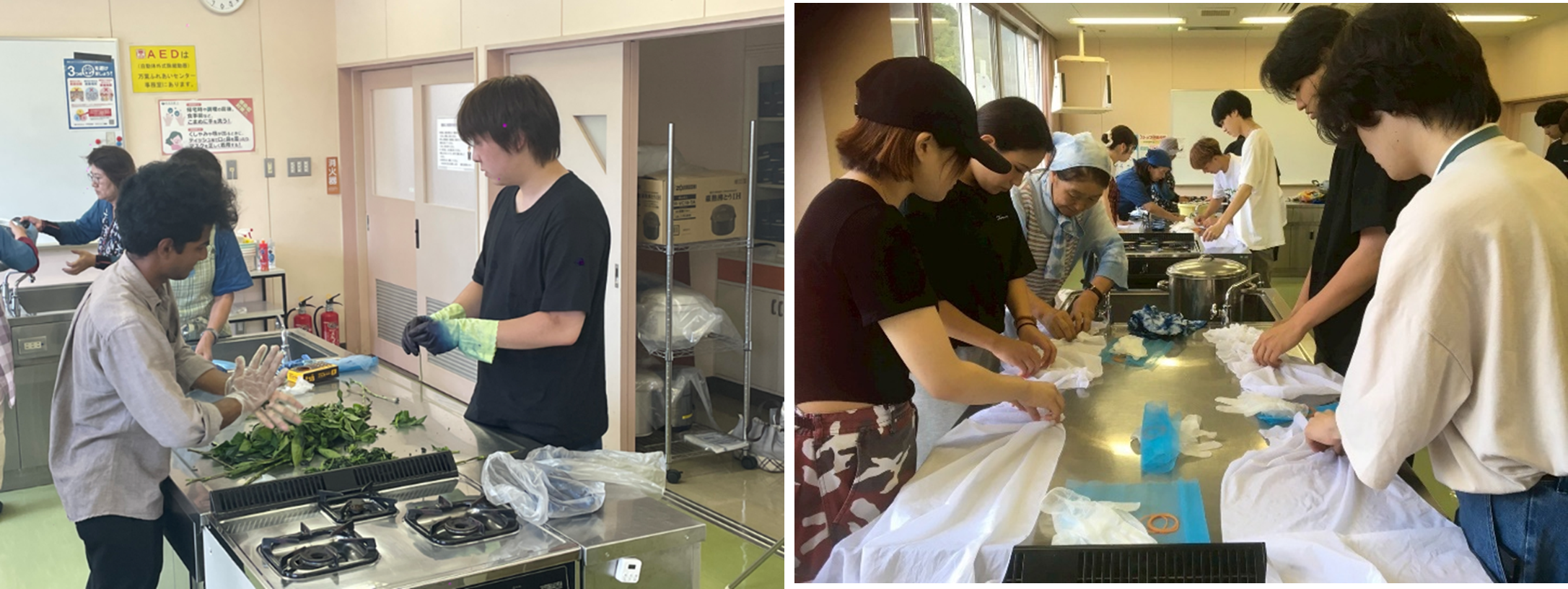 南相馬市災害復旧復興ボランティアセンターの方々から、藍染めの成り立ちから、上手く染めるコツまで教えていただき、多様な模様の手ぬぐいを染め上げました。食料生産のみならず、「ものづくり」で地域を盛り上げる地元の方のお話も聞くことができました。