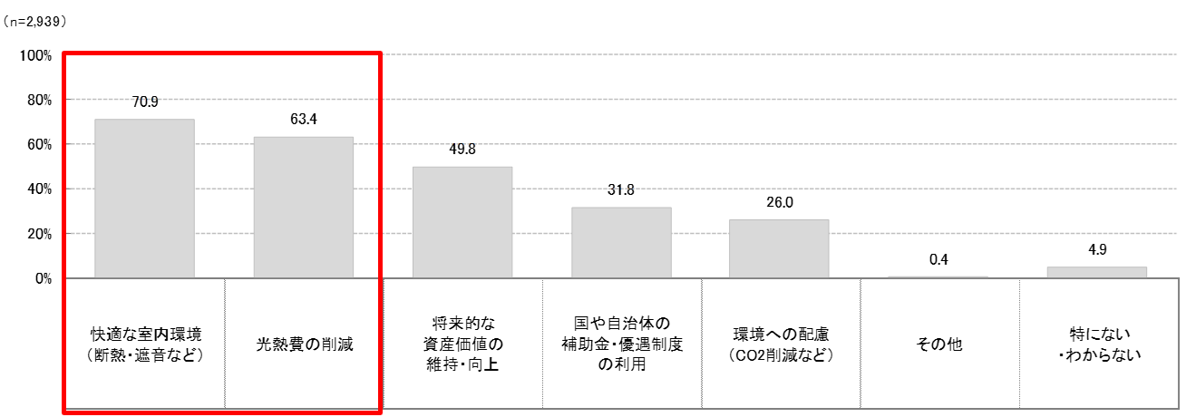 「快適な室内環境」「光熱費の削減」が省エネ性能における重視点の上位