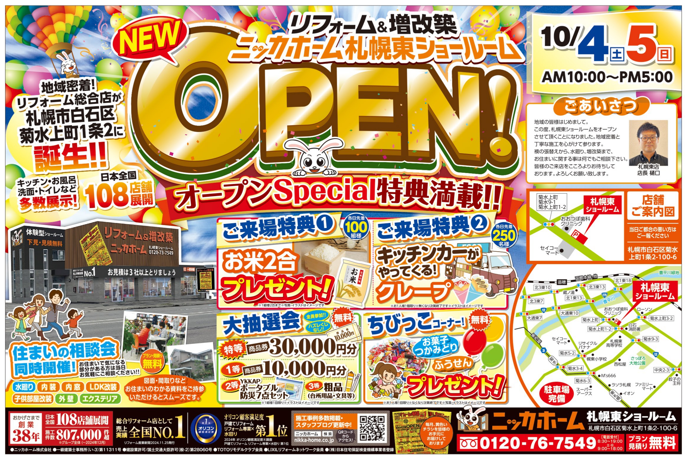 ニッカホーム株式会社(全国110店舗展開中)は2025年10月4日北海道札幌市白石区に「ニッカホーム札幌東ショールーム」をオープンします。