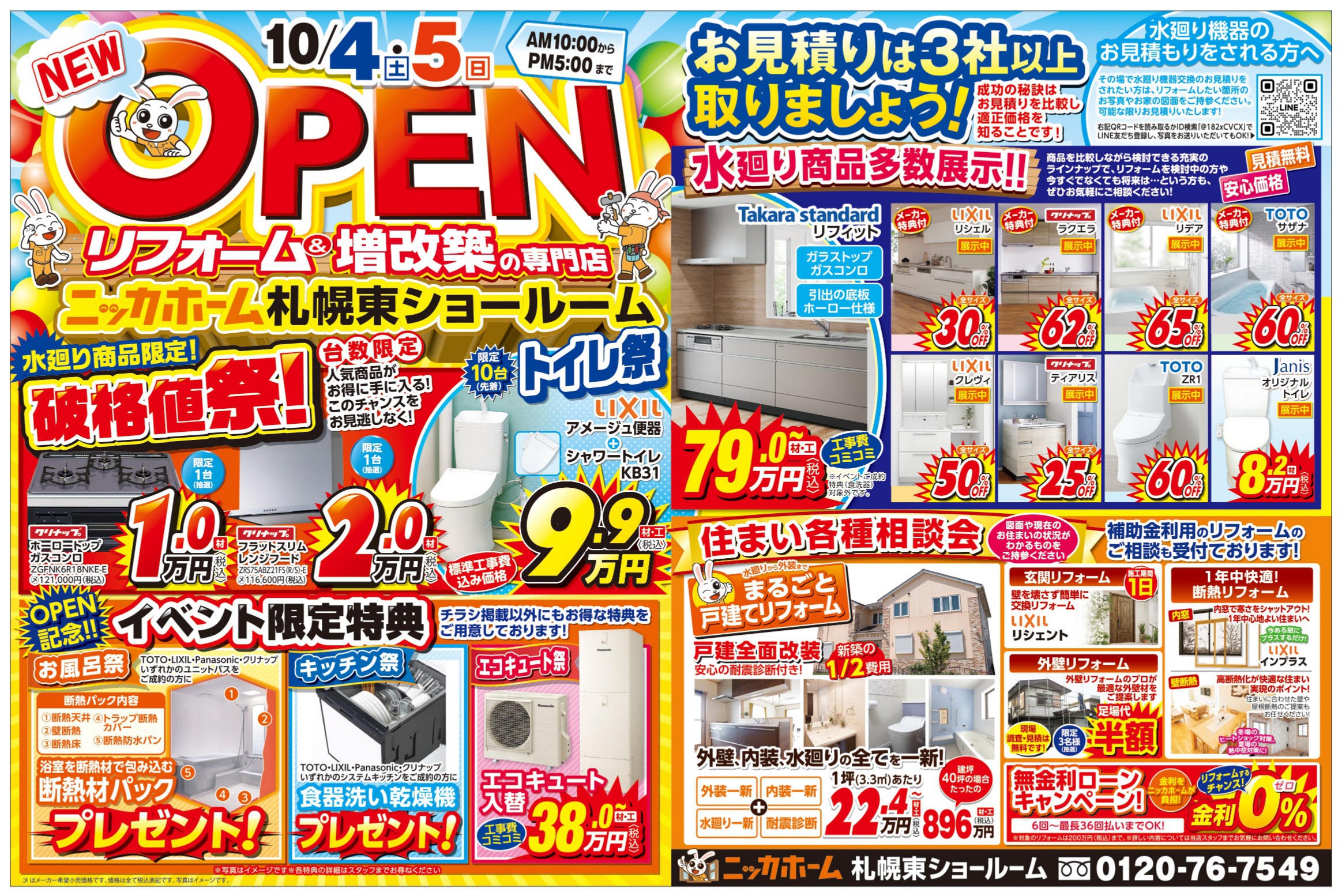 ホームイベントニッカホームがリフォーム事業で北海道初進出!! 札幌東ショールーム10月4日オープンへ