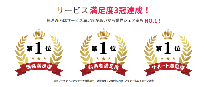 サービス満足度評価、「価格満足度第1位」、「利用者満足度第1位」、「サポート満足度第1位」という3冠を達成いたしました(2019年3月期ブランド名のイメージ調査)。