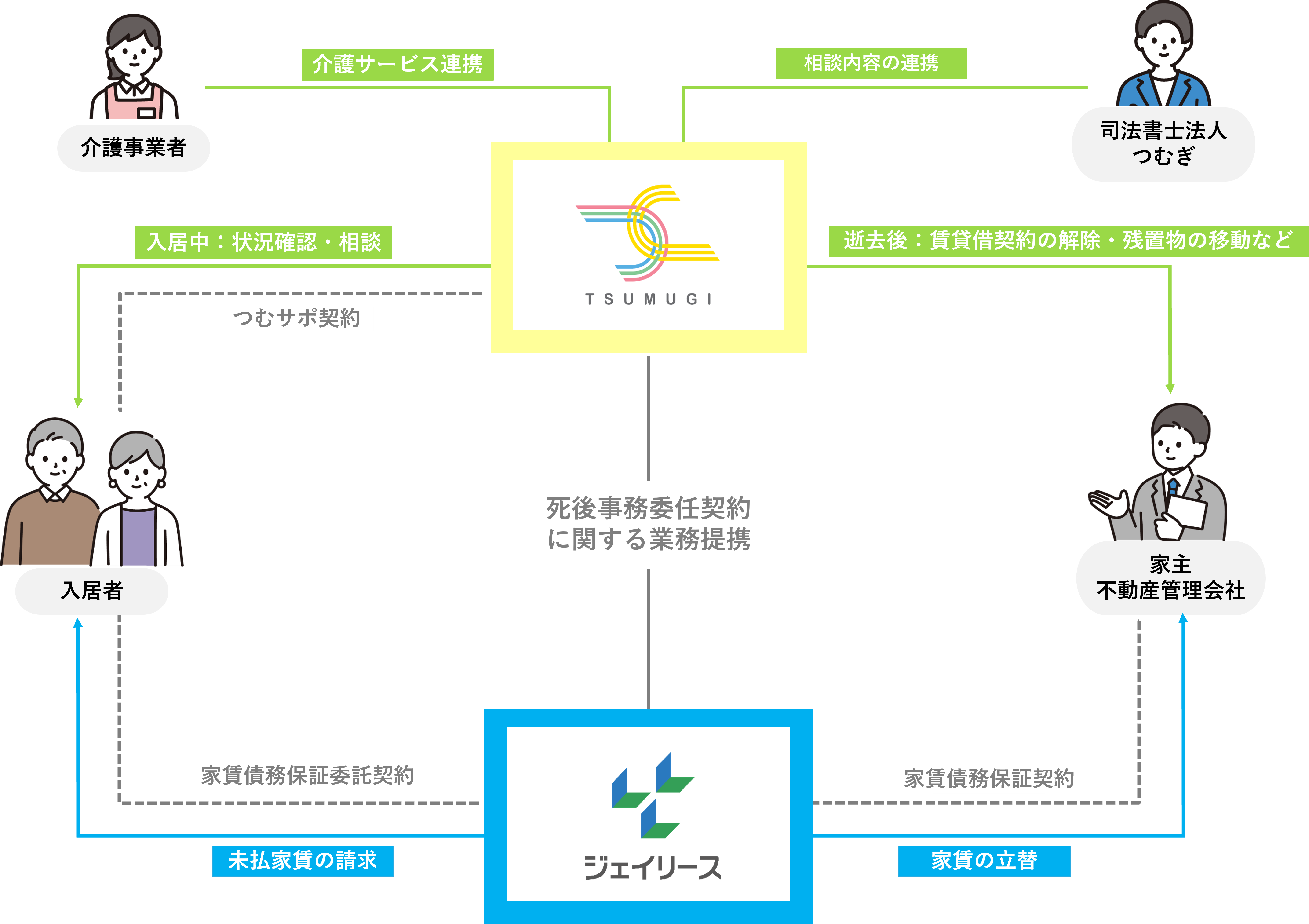 ジェイリース株式会社(本社:東京都新宿区・大分県大分市、東証プライム市場:7187、以下ジェイリース)は、シニア世代の生活支援並びに終活支援を行う株式会社つむぎシニアライフサポート(本社:大阪府大阪市 以下つむぎシニアライフサポートと表記)と死後事務委任契約に関する業務提携を開始したことをお知らせいたします。