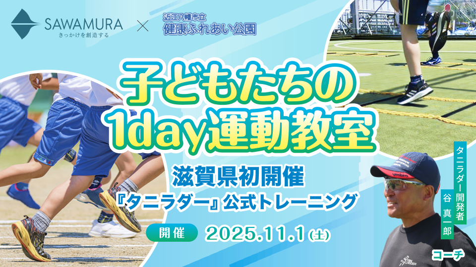 創業74年の総合建設業、株式会社澤村(本社:滋賀県高島市、代表取締役:澤村 幸一郎)は、住まいを提供する会社として建物だけでなく、暮らしに寄り添うさまざまな活動や体験機会も創出しています。このたび当社は「子どもの健やかな成長」をサポートする一環として、プロスポーツチームの指導も行う元サッカー日本代表 谷 真一郎氏考案の『タニラダー』トレーニングを通して、子どもの運動力向上を応援するイベント「子どもたちの1day運動教室」を近江八幡市立健康ふれあい公園で開催します。