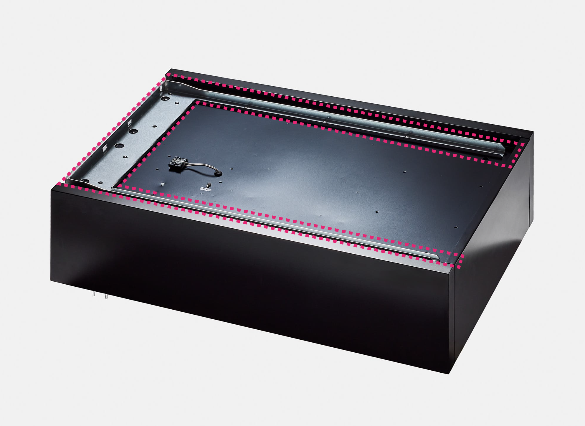 「シンプルな薄型の箱がコンロ上にすっと浮遊しているように見せたい」と、以下のポイントを抑え開発していきました。
