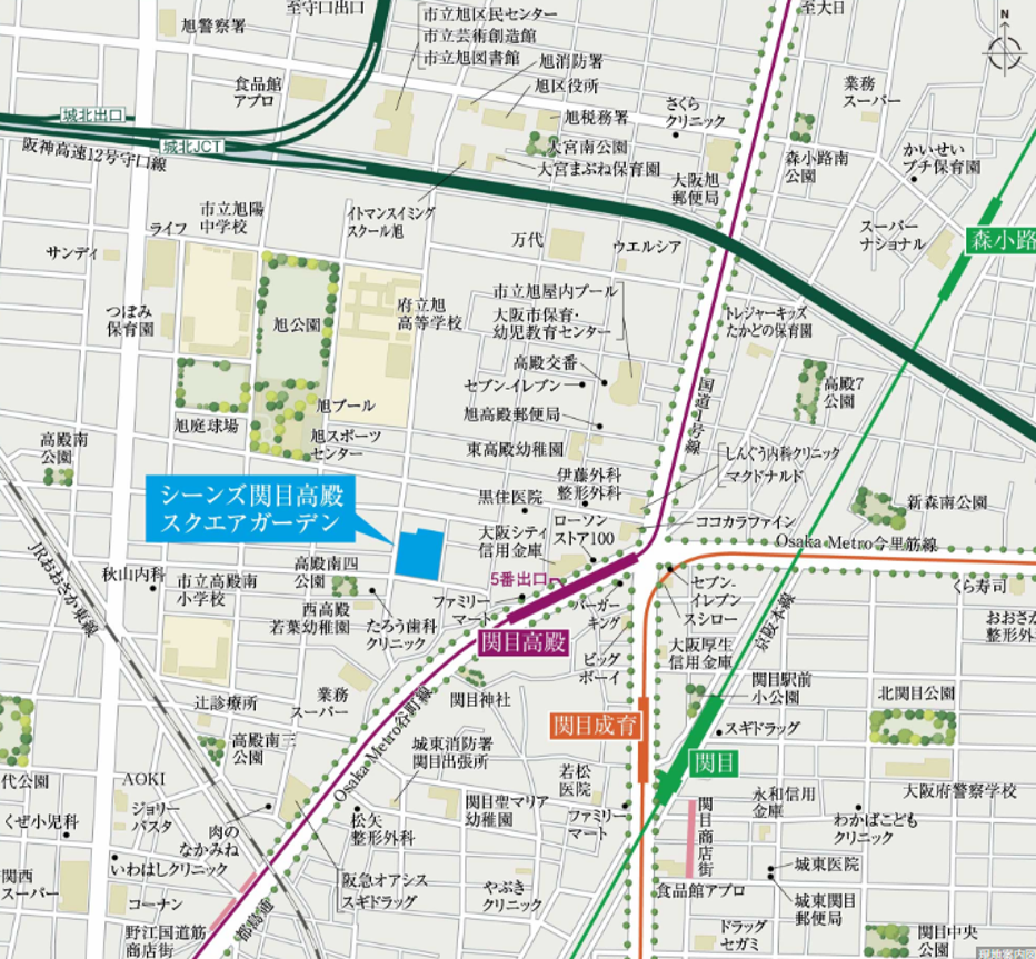 「シーンズ関目高殿スクエアガーデン」は、Osaka Metro谷町線「関目高殿」駅徒歩3分の立地に誕生。Osaka Metro谷町線「東梅田」駅まで直通11分でアクセスでき、全134邸の大規模物件かつ、彩り豊かな植栽に囲まれた緑地計画を配しております。