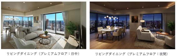 24階には、ゆとりある広さや間接照明のあるリビング空間を実現した専有部を配置し、ワンランク上の上質さをご提供するプレミアムフロアとなっています。都心の景色を贅沢に味わうことができる希少な眺望から、開放感のある時間をお過ごしいただけます。キッチンには、海外製の大容量フロントオープン式食洗機や電子レンジ機能付きオーブンを備え、毎日の暮らしに華やかさを与えます。