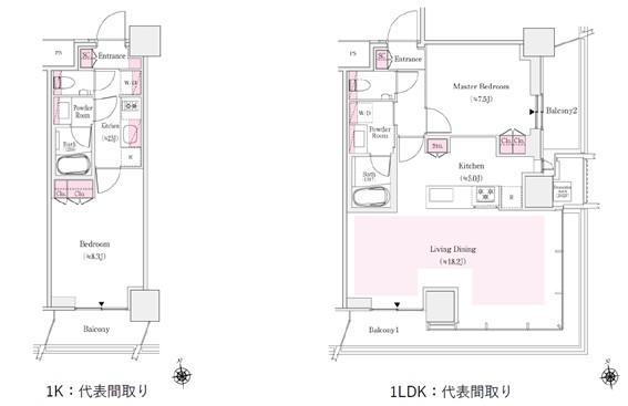1Kから2LDKまで、豊富な間取りをご用意しました。カラースキームは、やさしい色調のナチュラルベージュと、モダンな印象を与えるグレージュの2種類からお選びいただけます。窓からの景色は、北側には眼下に山手線の車両基地や都心の街並み、東側上層階からは海、南西側からは富士山が見えるなど、開口部の方角により表情が異なりますので、それぞれの嗜好に合った部屋を選択いただくことが可能です。