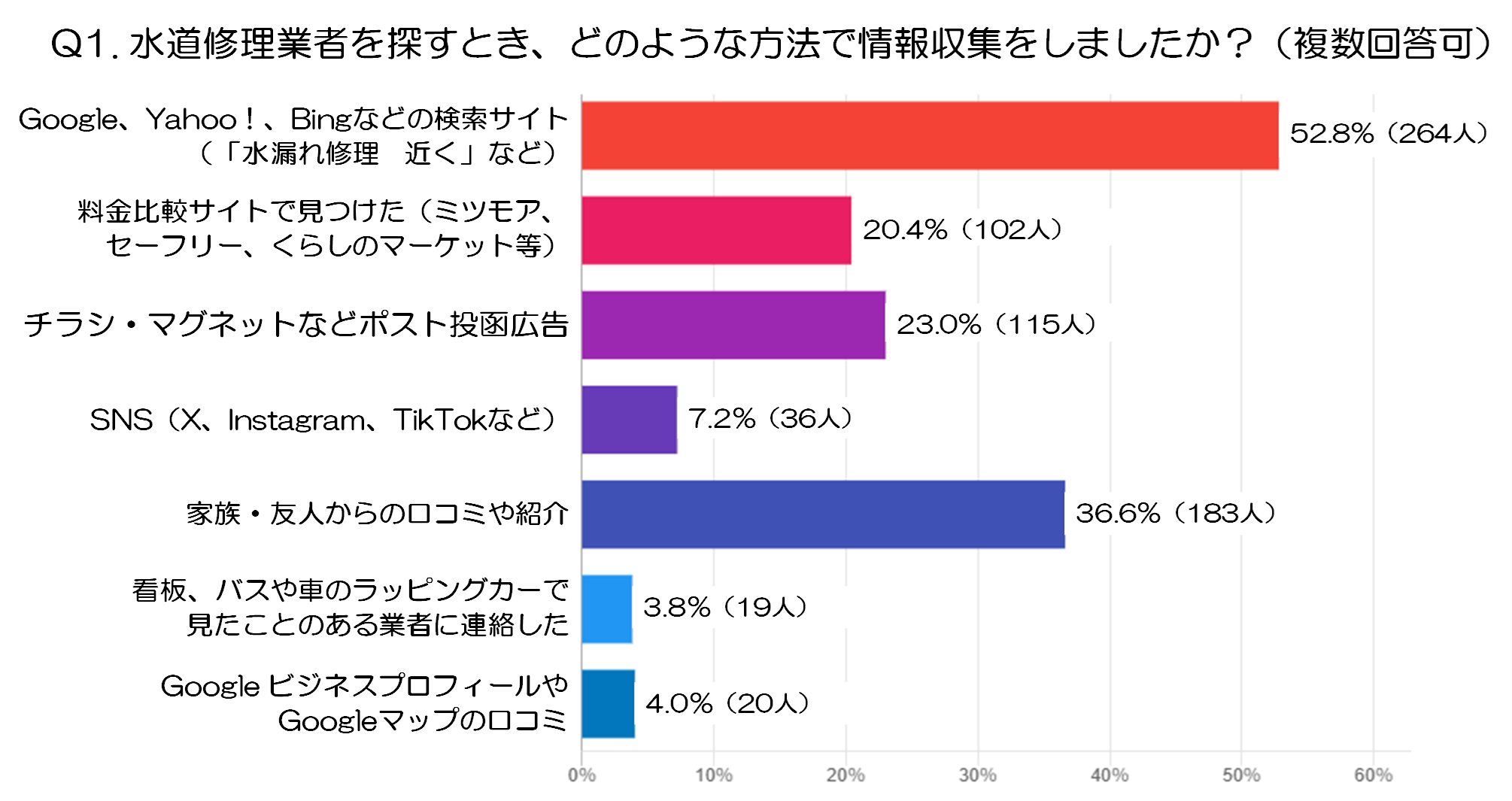 Q1. 水道修理業者を探すとき、どのような方法で情報収集をしましたか?(複数回答可)