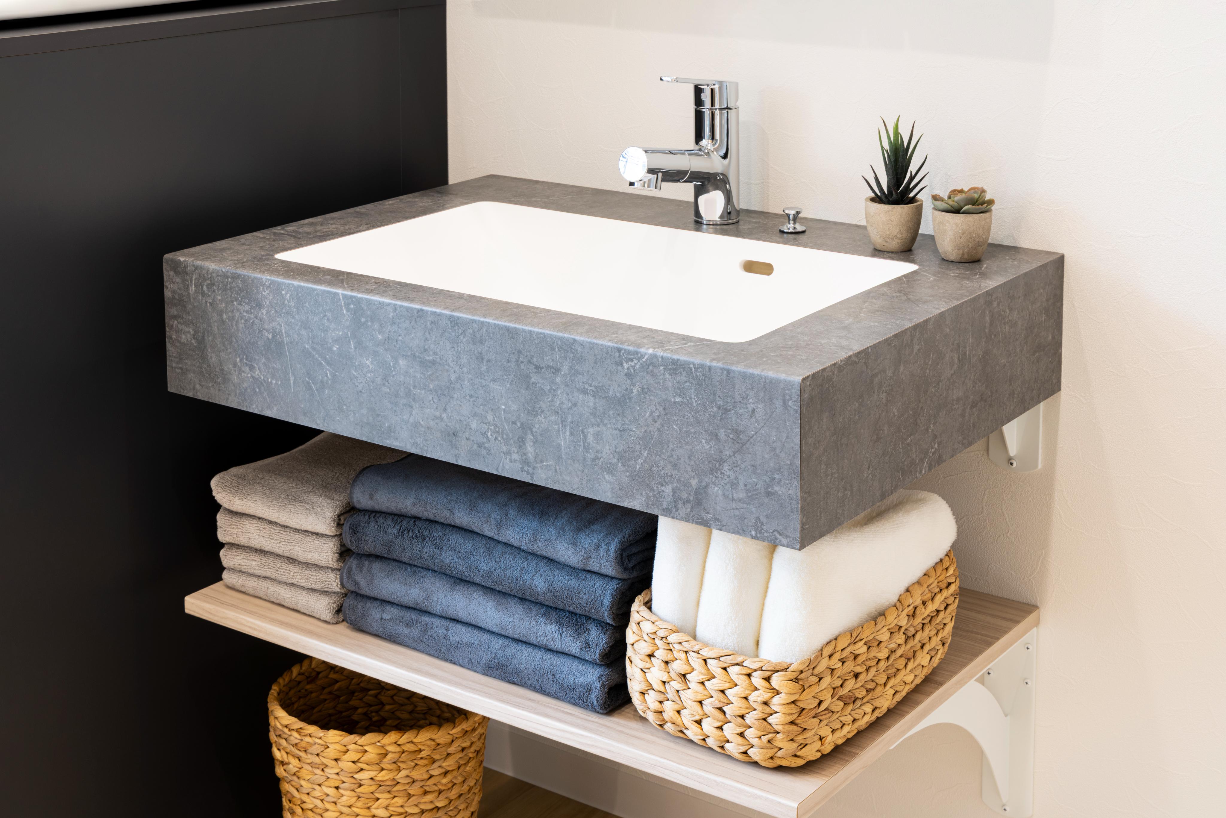 アイカ工業「スマートサニタリーU」…SNSでも話題沸騰の造作洗面化粧台のシリーズ。スタイリッシュな2段収納モデル。