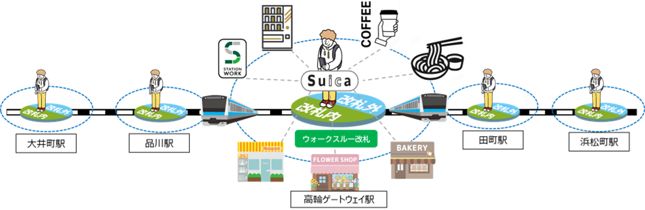 2026年春から高輪ゲートウェイ駅、大井町駅にてウォークスルー改札の通路を設置しシームレスなご利用を体験いただけます。また、2027年春には広域品川圏5駅にてウォークスルー改札の実証実験を実施します。さらに、2028年度には、広域品川圏エリア内において、当社グループならではの鉄道と各種サービス(コーヒー、STATION BOOTH等)を一体でご利用いただけるサブスク商品を展開します。