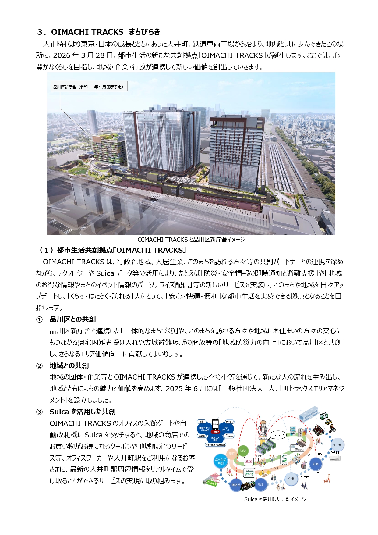 〇2026年3月28日(土)に、国際交流拠点「TAKANAWA GATEWAY CITY」がグランドオープン、都市生活共創拠点「OIMACHI TRACKS」がまちびらきし、「広域品川圏」の共創まちづくりが本格始動します。