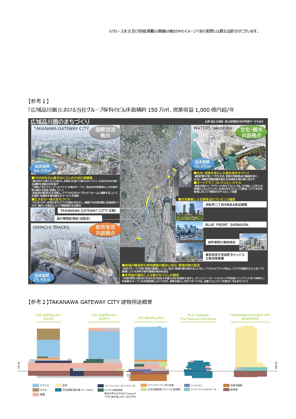 〇JR東日本グループは、浜松町駅から大井町駅間の東京南エリアを「広域品川圏(Greater Shinagawa)」と位置づけ、グローバル都市間競争において、このエリア一体で国際都市東京の未来を拓き、東京の新たな魅力・価値向上(バリューアップ)を創出する共創型都市エリア戦略を展開します。