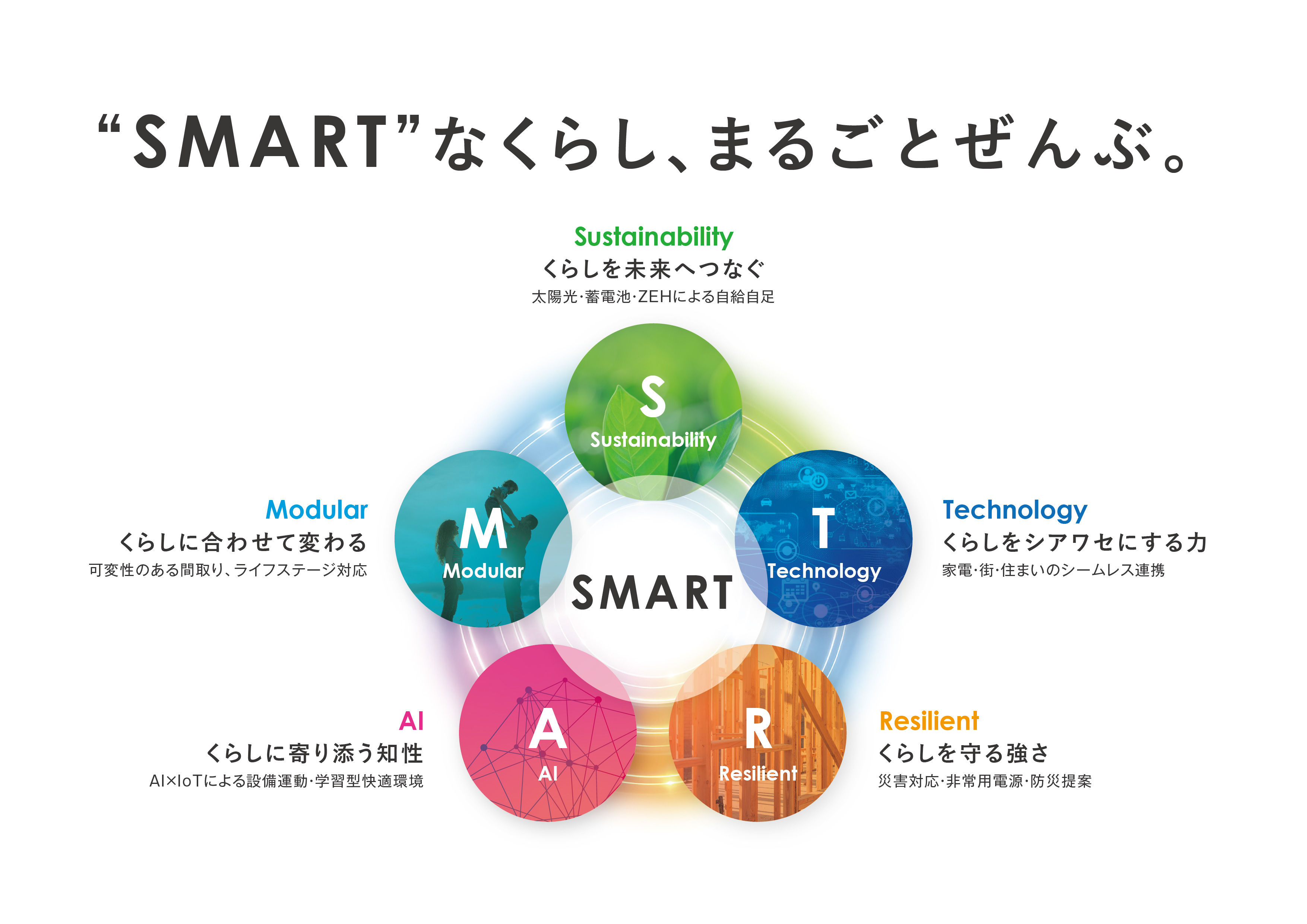これら5つの価値を通じて、「住まいとテクノロジーが自然に調和する未来のくらし」を提案します。