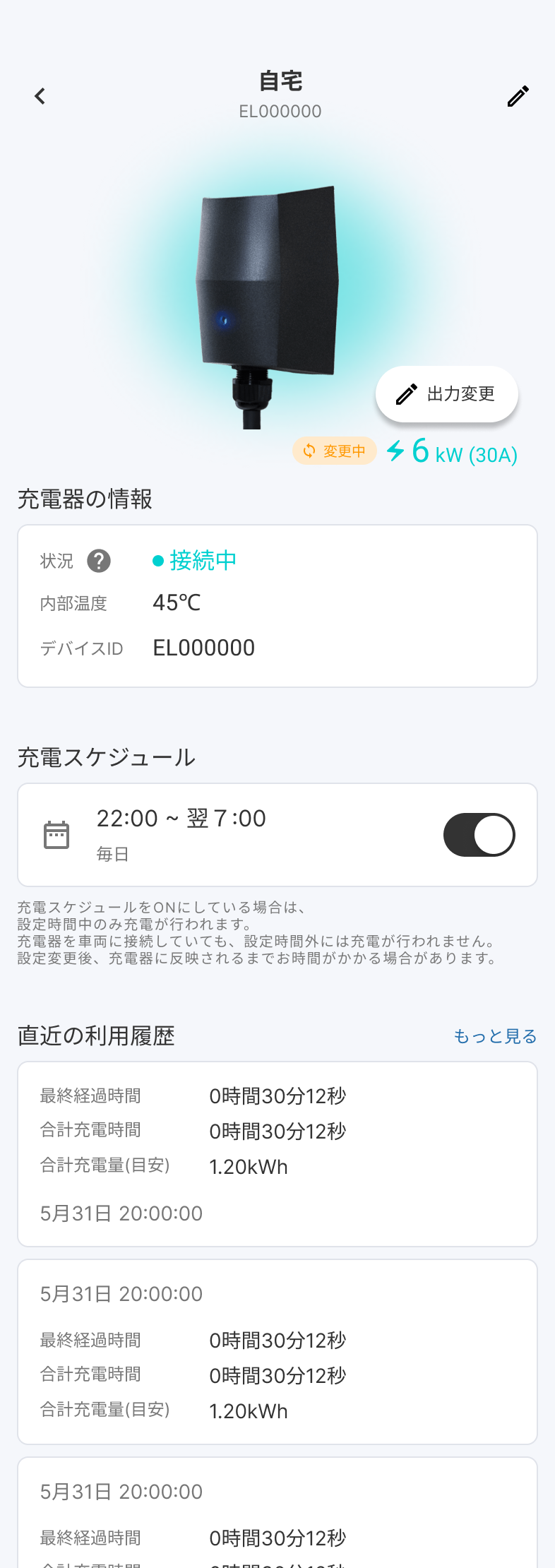 ※設定が充電器に反映されるまで、少し時間がかかる場合があります。