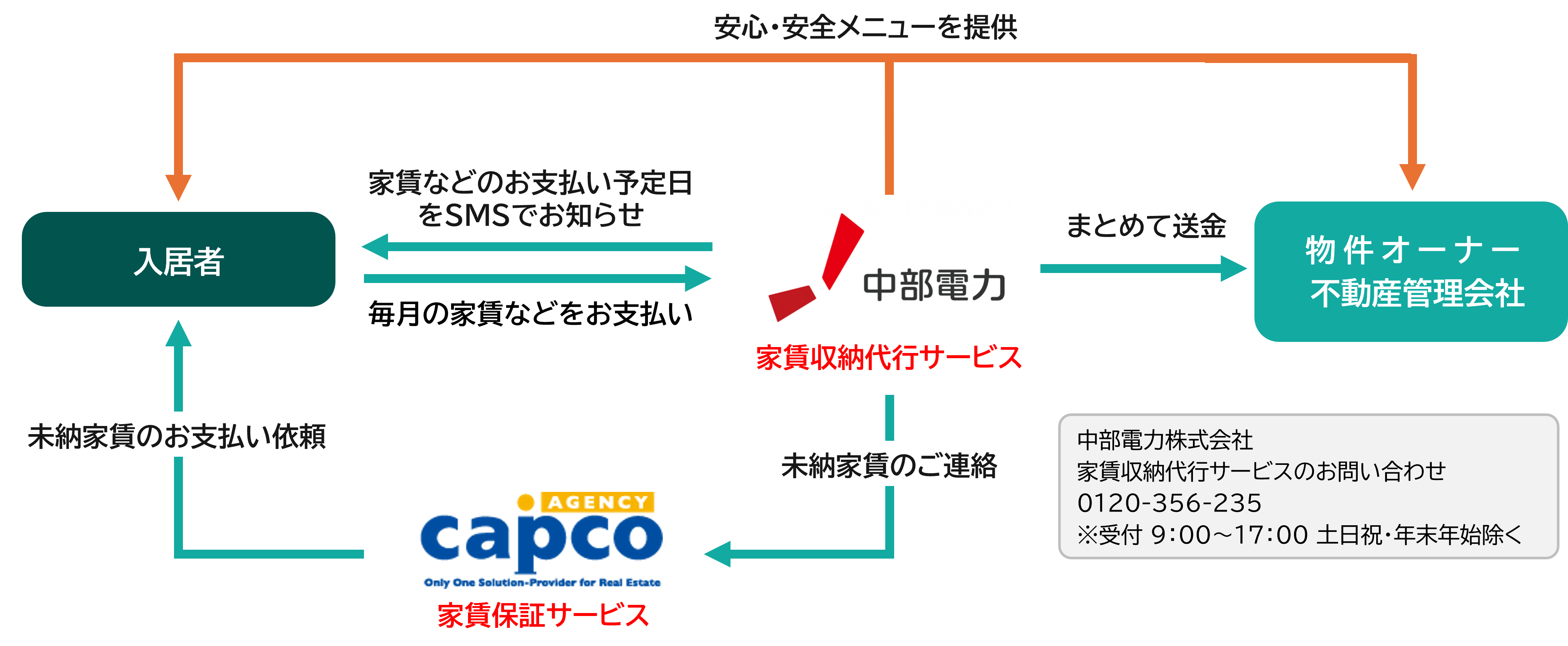 今回の検証プロジェクトは、こうした課題に対応するため、家賃収納代行事業で実績を持つCAPCO AGENCYが、電力という生活インフラを担う中部電力と連携することで、入居及び各種インフラサービスのシームレスな契約手続きから入居後の家賃支払いまでワンストップ化を実現し、「住まいとエネルギーの契約を一体化した新しい生活基盤」の提供を目指します。