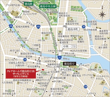 周辺は、かつて武家屋敷町として整えられた歴史を持ち、現在も落ち着いた街並みが残る、徳島市内でも有数の閑静な住宅地。身近に商業・教育施設などが揃い、子育て世帯にとっても暮らしやすい住環境が整っています。