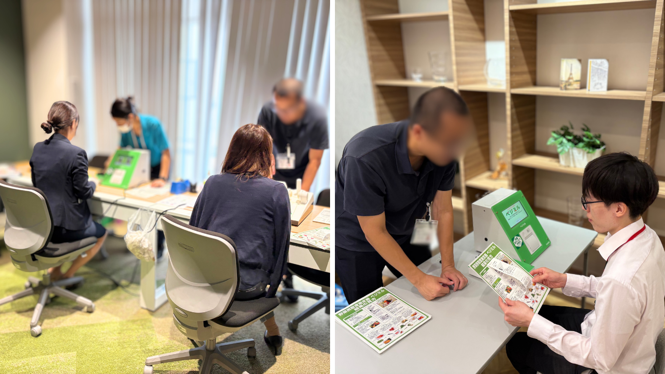社員一人ひとりが自身の健康状態を簡便に確認できる機会を設けることで、早期の生活習慣改善を推進することを目的に、今回、木更津市健康推進課の皆様に来ていただき測定会を実施しました。