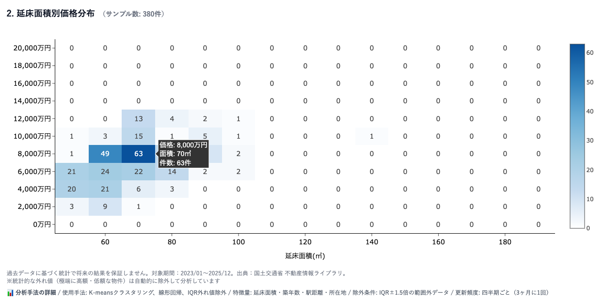 ▼延べ床面積別価格分布