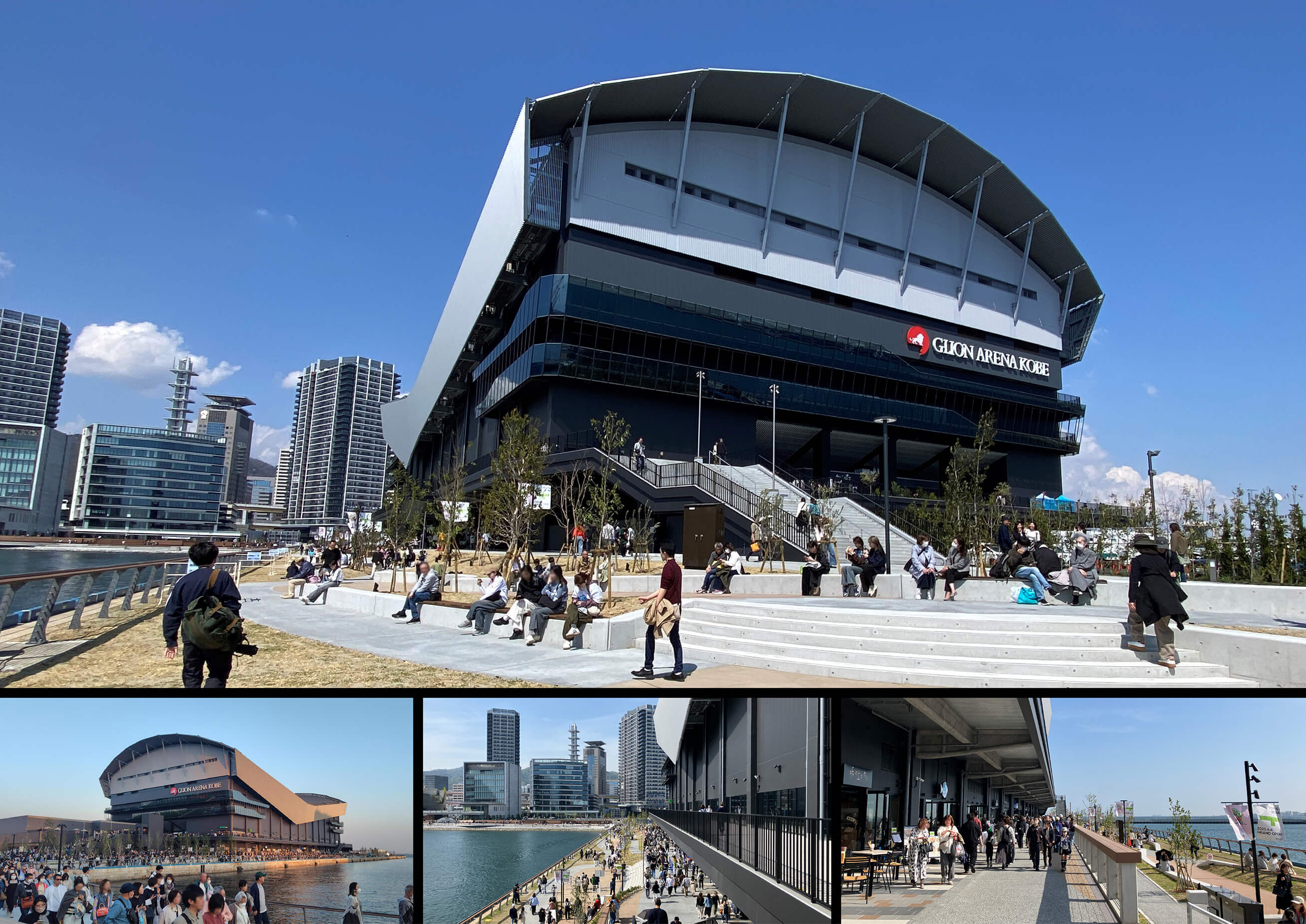 アリーナという施設は、イベント開催時には人が集まり街に賑わいをもたらすが、それ以外の日常に集客できるかどうかが運営上の大きなポイントとなる。この施設は、三宮駅からほど近く利便性の高い立地にあり、施設低層部には、海に面して飲食店舗が並び、限られた敷地ながらも港の風景を楽しめる居心地のよいランドスケープデザインが丁寧に施されている。1万人収容の客席は、突堤という特殊な細長い敷地を上手に活用して配置され、ここにしかない臨場感のある体験ができそうである。長年積み上げてきた神戸の港の風景に、V字型のシンボリックな形態が加わり、夜間景観も含めて、魅力的な景観を生み出した。