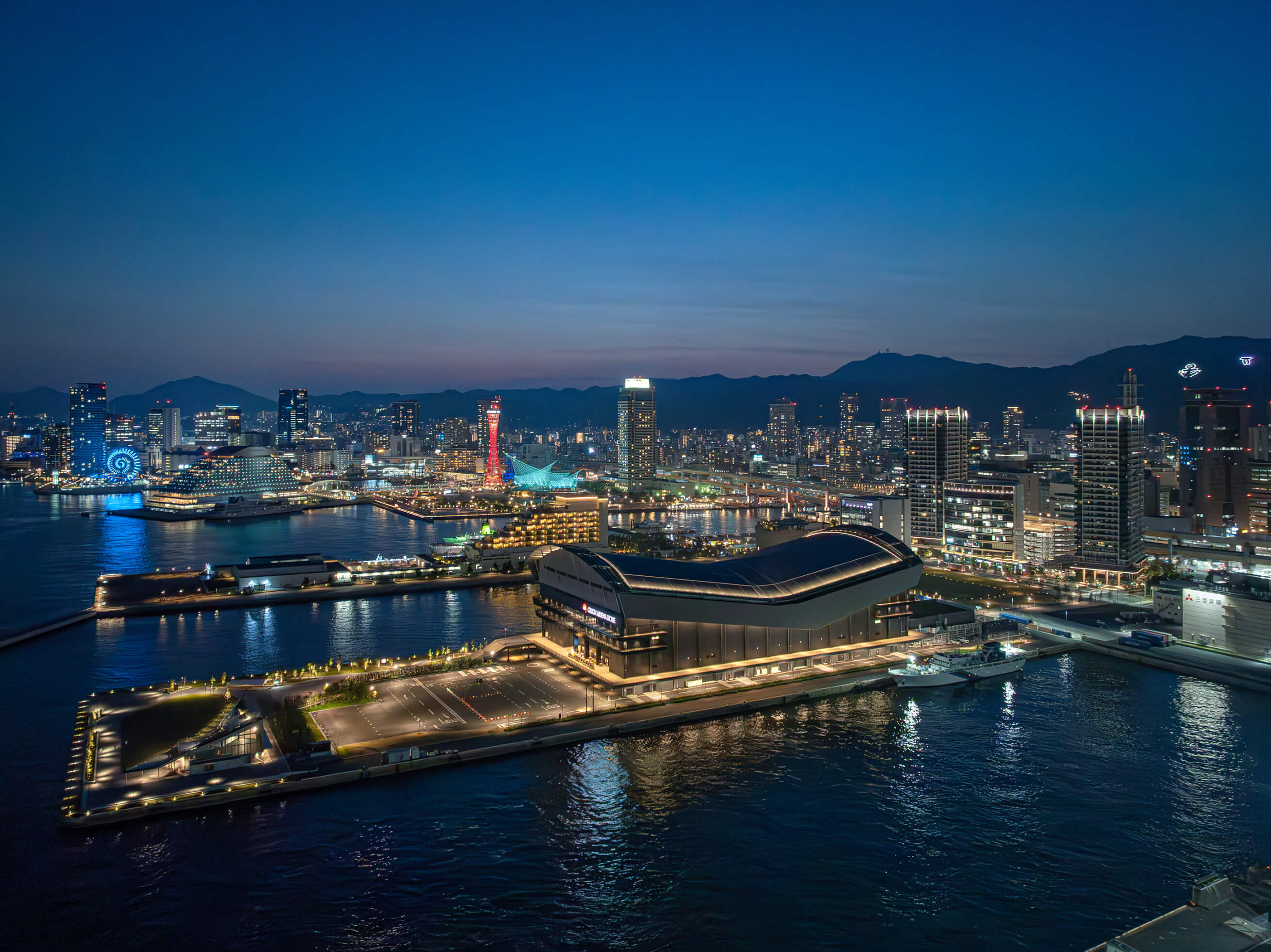 ウォーターフロントエリアの港湾物流拠点から賑わい拠点への転換をめざしたプロジェクトです。270度海に囲まれた突堤の幅約65mの細長い敷地において、馬蹄型の座席配置を取り入れた1万人収容のアリーナを実現しました。夜景と環境負荷低減にも配慮した”V字型”のシンボリックな建物形状に加え、周辺広場との一体的な開発により、港町・神戸の街の変化を牽引します。