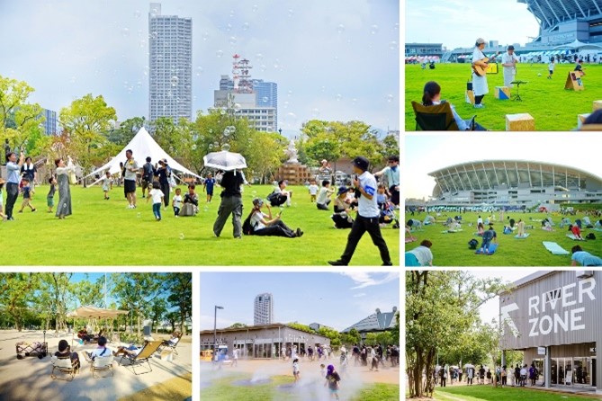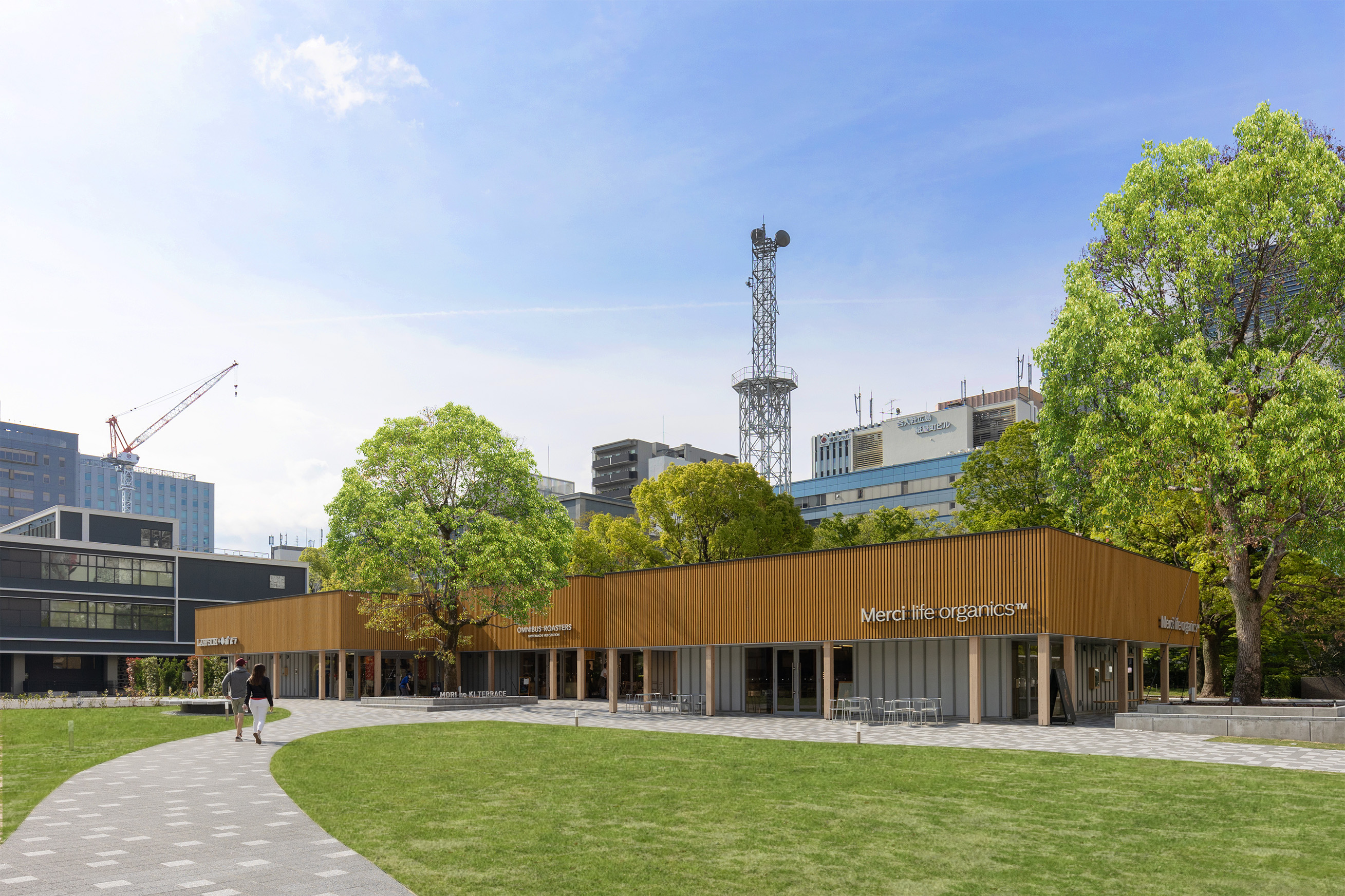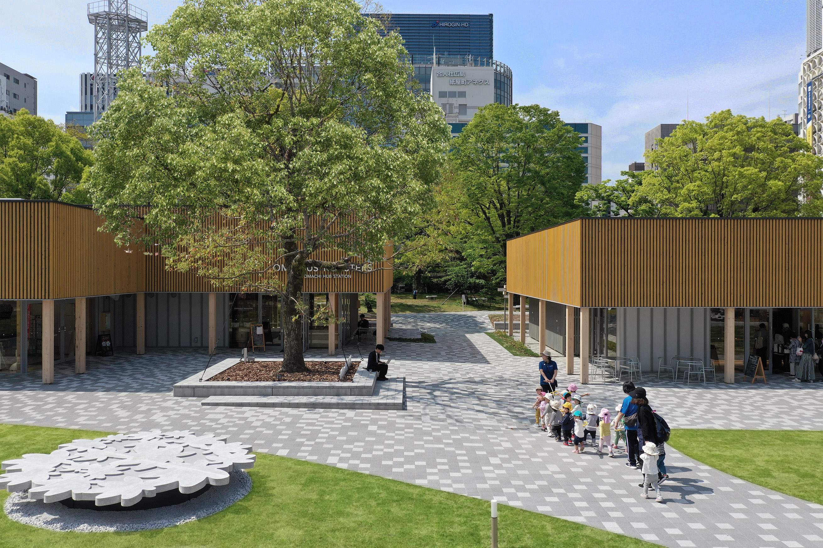 大型商業施設が生活の中心にある地方中核都市「広島」において、公園を使いこなすライフスタイルを醸成すべく、その地に在る水と緑と共生する商業施設を都心部に計画したプロジェクトです。非日常の熱狂を創る新スタジアムに寄り添いながら、日常の賑わいと憩いのシーンを補完するほか、周辺環境と調和し、地域活動を育む“都会のオアシス”となる商業施設をめざしました。