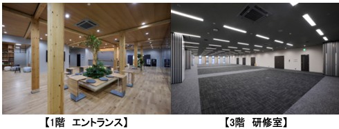 1階内装床には、準耐火構造を実現するための設計手法である燃えしろ設計の構造体に加えて、国産木材を使用したフローリング、天然木パネルの天井によって内装の木質化を図りました。3階研修室は、大断面集成梁120mm×690mm×12,000mmをプレカットし、384㎡の無柱空間を実現しています。