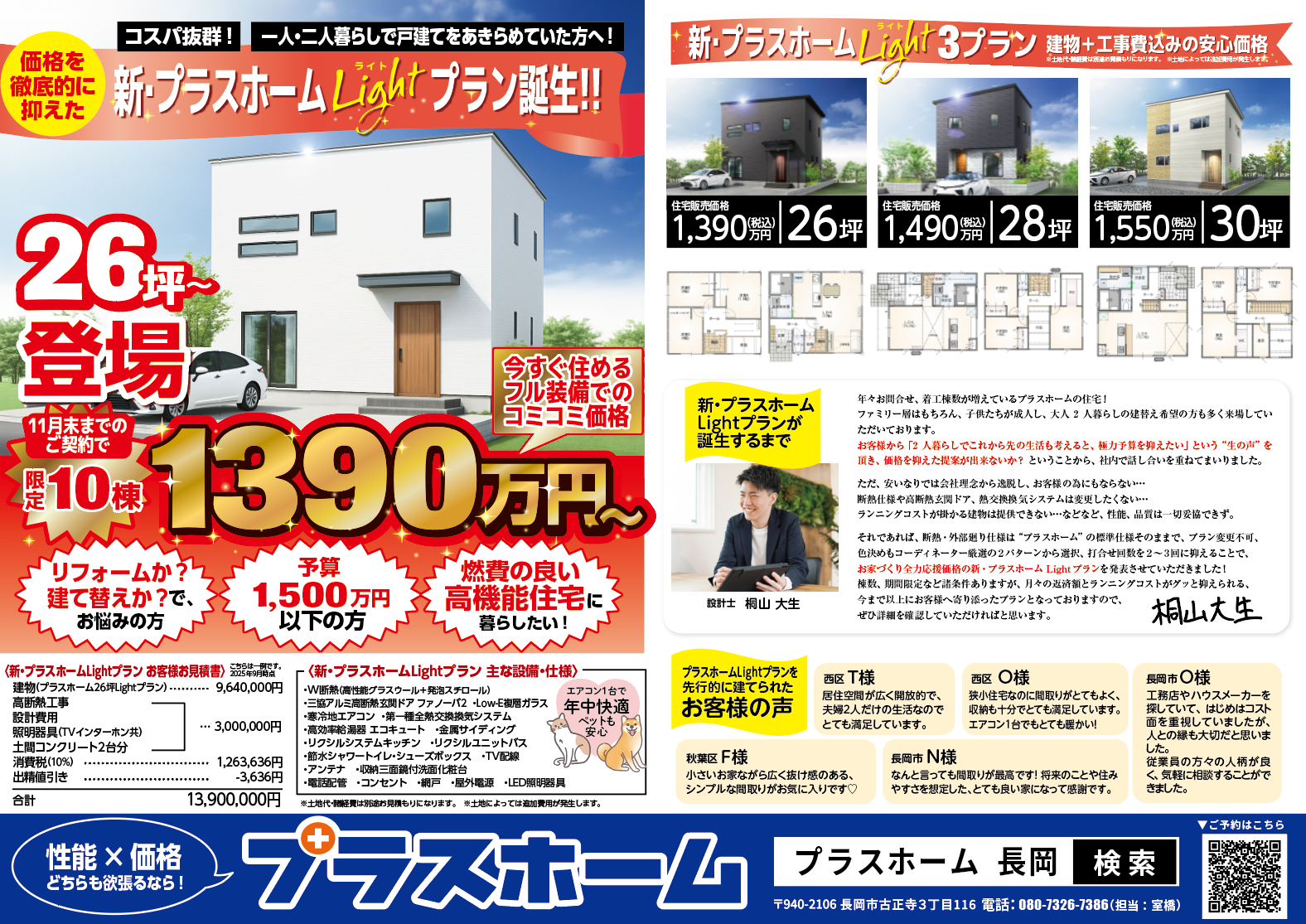 ローコスト注文住宅専門店のプラスホームは、今よりももっとお得に家を建てられるlightプランを発表しました。