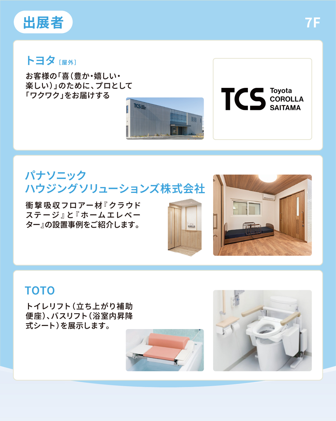 車椅子ユーザーでも快適に使える最新の自動開閉する玄関ドアから、AI技術を活用した活用した見守りシステムまで、「住まいのバリアフリー」の最前線を体験できます。昨年の開催では、出展各社の技術者が直接説明を行い、バリアフリー住宅の設計・施工に精通した専門家が、一人ひとりの課題に合わせた無料相談を承ります。これまでにも「ちょっとした工夫で、ここまで快適になるとは思わなかった」という驚きの声が多数寄せられています。