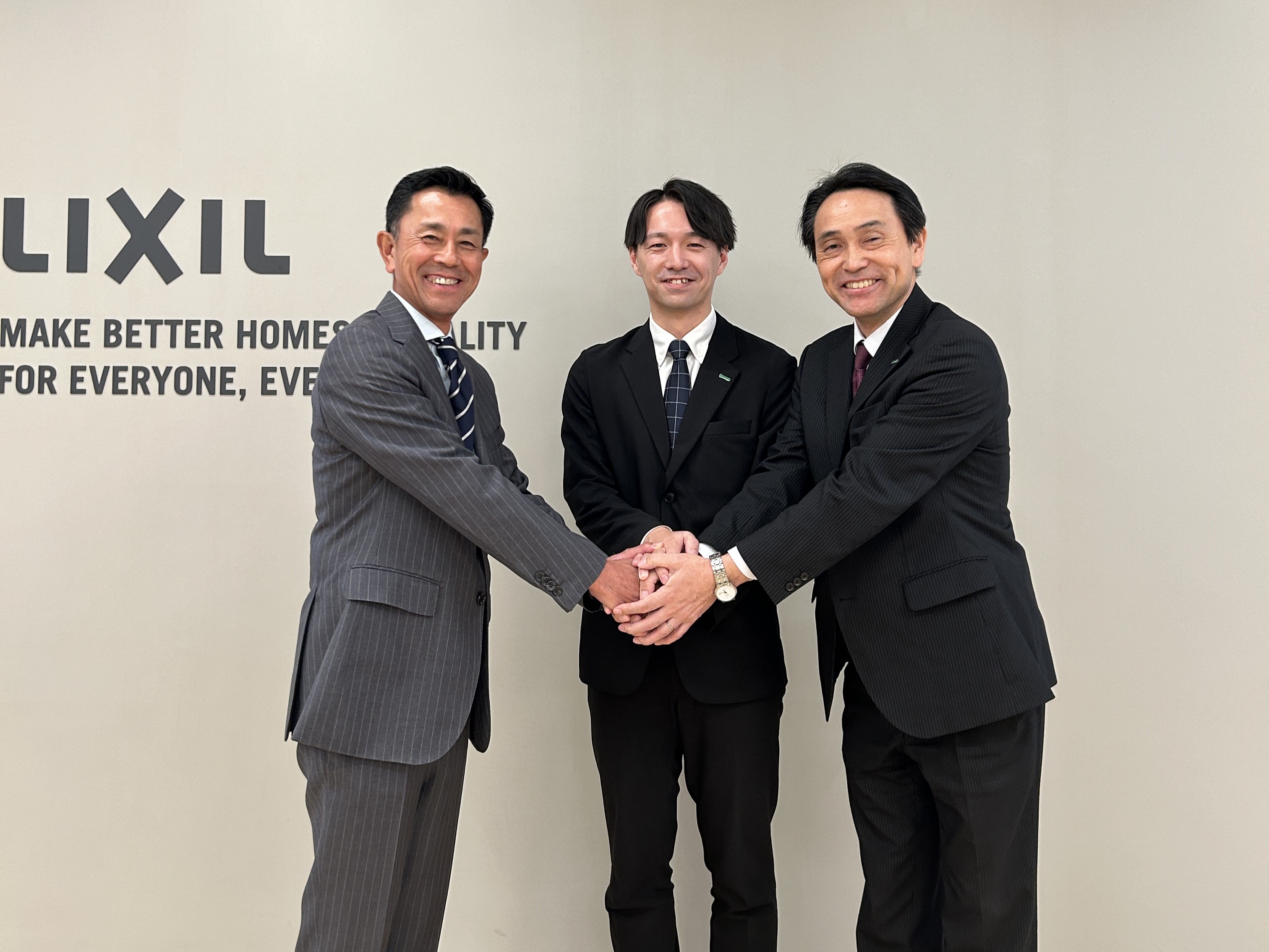 左から加嶋 伸彦/株式会社LIXIL住宅研究所 代表取締役、小松 知弘/株式会社ヤマウラ フィアスホーム松本南店店長、井崎 博文/株式会社ヤマウラ営業本部副本部長