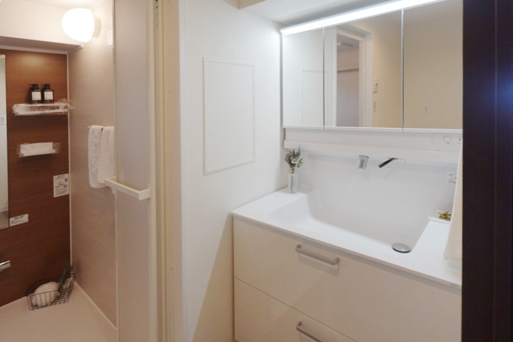 ・洗面化粧台(TOTO製 W900水がたまりにくい「お掃除ラクラク水栓」)