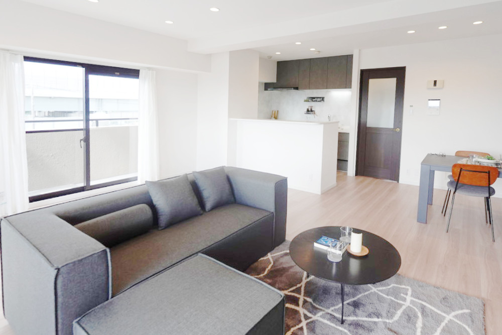 また、内装仕上げを一新し、住宅設備を新しく交換しています。和室だった場所をリビングに間取り変更を行い、キッチンとリビングとの一体感を演出しました。