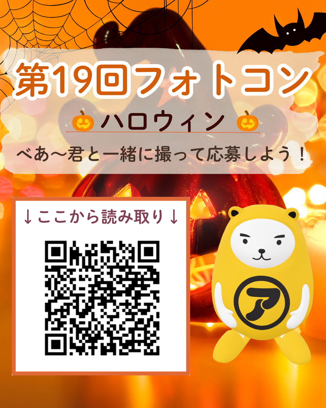 “AR×季節の行事”は、地域の楽しさを再発見できる取り組みです。第19回はハロウインをテーマに、皆さまの街やご自宅、イベント会場など、さまざまな場所で『べあ〜君』と一緒に撮った一枚をお寄せください。